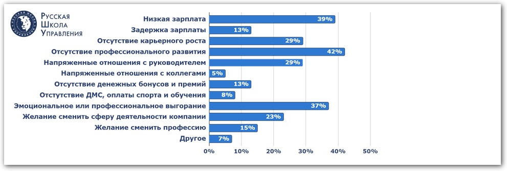 Чаще всего сотрудники уходят из компаний из-за низкой зарплаты, отсутствия профессионального развития, эмоционального или профессионального выгорания. Однако есть и другие частые причины: