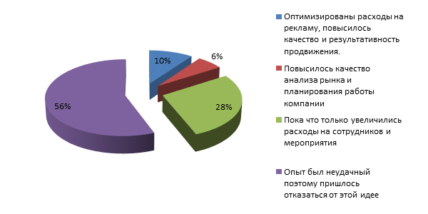 - Предположим, в этот раз отбились, – ухмыльнулся мой собеседник. – И все же 16% руководителей вам сказали, что этот опыт был успешным и результатом они довольны. Значит, вы можете конкретно сказать, как именно улучшилась жизнь компании после выделения направлений маркетинга и рекламы?