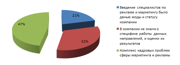 Рис.1.: Оценка результатов введения специалистов по рекламе и маркетингу в 98 компаниях малого и среднего бизнеса Москвы и СПб.