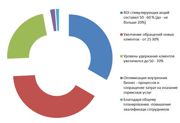 -Как видите, мы выделили несколько основных блоков, которые присутствуют в результатах всех компаний. Они охватывают характеристику эффективности акций, количество обращений новых клиентов, удержание действующих клиентов, оптимизацию бизнес – процессов и повышение квалификации сотрудников. В дальнейшем, развитие направлений маркетинга, рекламы и pr с помощью бизнес – консультаций, по сути, стало одним из основных направлений нашей работы. Посмотрите, мы сегодня проанализировали опыт работы в данном направлении и собранные сегодня результаты довольно близки к общей тенденции, которая обозначена в статистике прошлого опроса:
